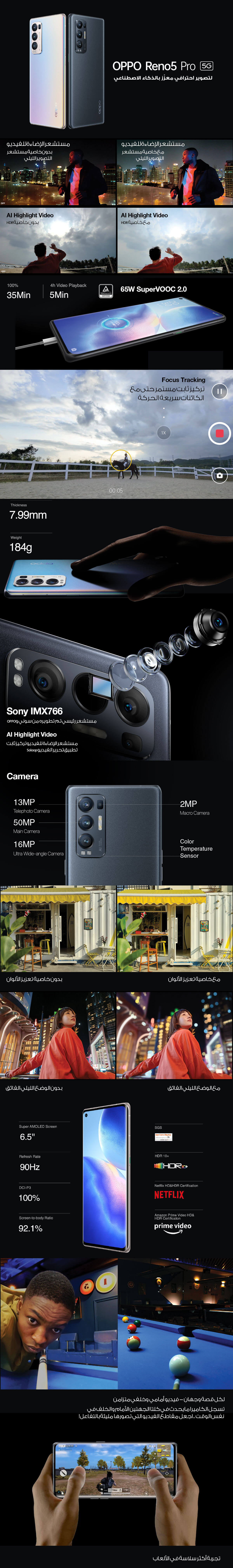 اوبو رينو6 برو سعة 256 جيجابايت الجيل الخامس (5G) ثنائي الشريحة – أزرق أركتيك