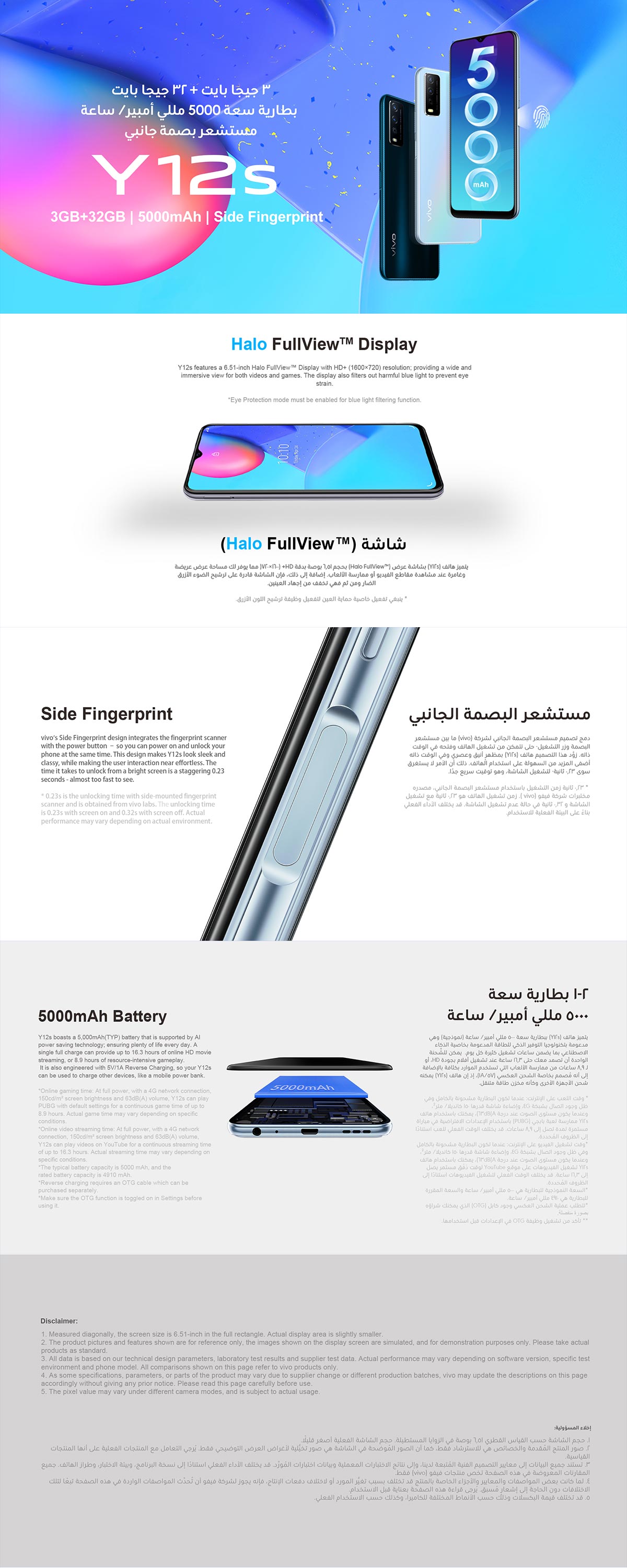 فيفو واي 12 اس سعة 32 جيجابايت ، الجيل الرابع 4G – أسود